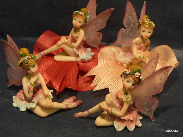 Simpatica composizione adatta per il Battesimo e la Prima Comunione. La proposta include una delicata fatina dei fiori in colori pastello applicata su un grazioso sacchetto realizzato con una farfallina di tulle con i confetti, guarnita da una rouche operata e rifinita da un nastro in tinta dello stesso genere. La confezione, altezza circa cm. 9 e diametro circa cm. 11, e' proposta in due colori differenti, mentre le fatine sono assortite in quattro posizioni leggermente differenti. E' incluso nella confezione il bigliettino che stamperemo con i dati da voi forniti. Ricordate di scegliere i confetti che preferite.