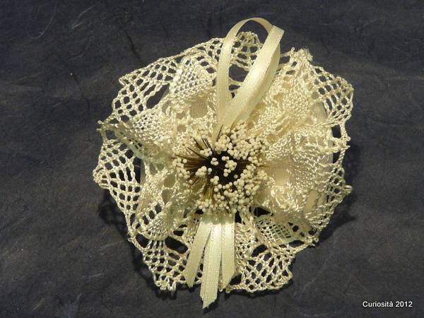 Prezioso sacchetto composto da una farfallina in tulle con confetti guarnita da Tombolo di viscosa in colore panna, nebbiolina e nastrini di raso in tinta. Diametro della confezione circa cm. 8,5. E' incluso nella confezione il bigliettino che stamperemo con i dati da voi forniti. Ricordate di scegliere i confetti che preferite.